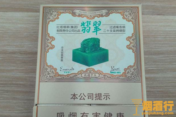 玉溪(双中支翡翠)的包装以金色为主,正面印有繁细的纹样和玉玺的图案,看起来十分的精致,其味道醇厚,以烟香和本草香为主,且烟气饱满,没有杂气。