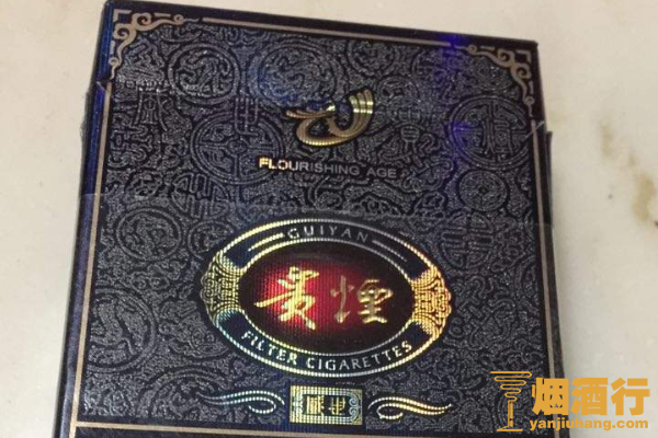 贵烟(盛世)是一款非常好抽的香烟,包装深蓝色为主,正面印有繁细的纹样,其口感舒适,味道醇厚,带有一股果香味,非常的好闻,在市场上很受欢迎。