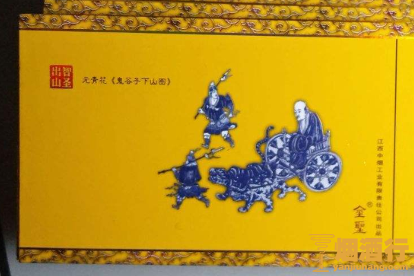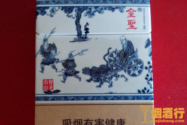 金圣(元青花鬼贵子下山)的包装以黄色为主,正面印有青色的图案,看起来十分的华丽,其口感舒适,烟气淡雅,很适合烟瘾较小的烟民。