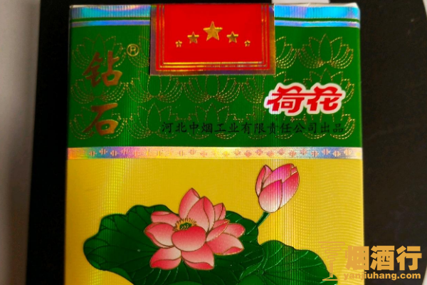 钻石(荷花)是一款销量非常好的香烟,包装以绿色为主,正面的黄色区域印有荷花图案,其口感润滑,味道醇厚,烟气细腻,回味舒适,有着非常好的吸食体验。