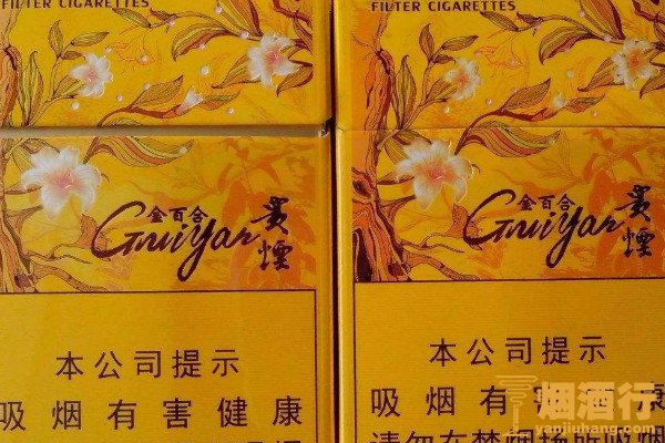 贵烟金百合外包装为尊贵的黄色,正面的金百合图案寓意纯洁,整体给人一种圆润自然的感觉,经过自然醇化的原料,带来醇厚的烟气,烟劲适中,余味干净,是一款性价比非常高的产品。