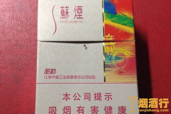 苏烟(甜韵)的包装以米色为主,正面右侧印有红色调的风景画,且味道香甜,口感顺滑,很适合烟瘾不大的烟民,但性价比一般,不是很划算。