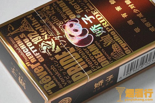 娇子软紫国宝外包装颜色为咖啡色,正面是灵动的熊猫图案,搭配简体的娇子品牌名称,整体风格较为简约,烟支在制作中采用纯天然的原料,最大限度的保持烟叶的本香味道。