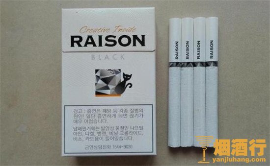 韩国猫(黑)混合型香烟中的平价极品,它外观简约,黑猫形象极为生动,烟支的设计也很简洁,白色的烟身,烟支的结构不错,烟丝填充紧实,底部看烟丝为金黄色。吸味醇淡清香,典型的淡雅清香风味。2018热销的韩国香烟raison有几款?它便是其中最畅销的一款平价外混香烟。