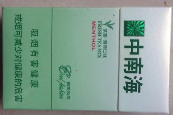 中南海(酷爽风尚)在烟嘴和烟丝中都加入了薄荷萃取物,使薄荷的清凉和烟草本香、茶香达到了完美的结合,另外渐变绿色的色调让人感到清新淡雅。