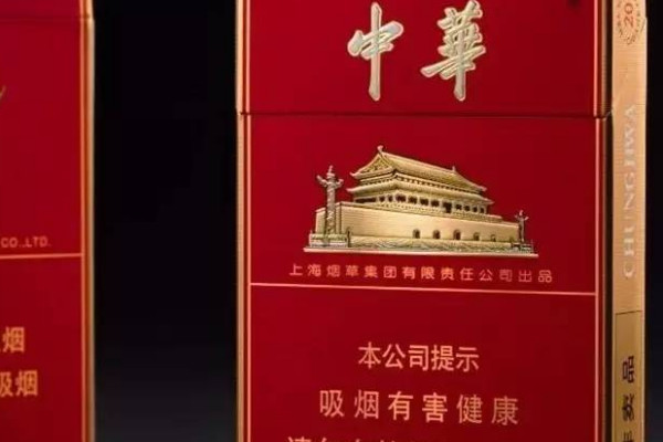 中华(全开式)烟盒颜色以红色为底色,四周印有金色的花边,风格明亮大气,烟气中带有梅子的香味,口感甘甜淡雅、醇厚。