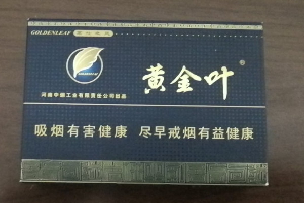 黄金叶(茗仕之风)的包装采用了暗蓝色,正面印有黄金叶的标识,外观典雅高贵,其口感柔和细腻,味道香醇,且烟气清淡,回味悠长,不足在于抽完容易口干。