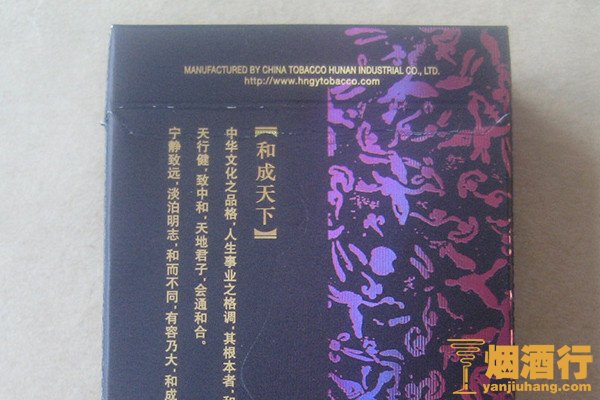 白沙(和天下)的包装以深邃的紫色为主色调,正面印有金色的商标,沉稳中凸显尊贵气质,且和天下是一款高档香烟,其口感醇和,烟气丰满细腻,唇齿留香。