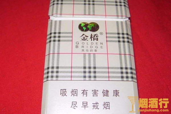 在金桥系列香烟中,金桥英伦奶香非常有特点,外包装呈香槟色,分布有格子花纹,非常有英伦风,味道柔和,有淡淡的奶香味道。