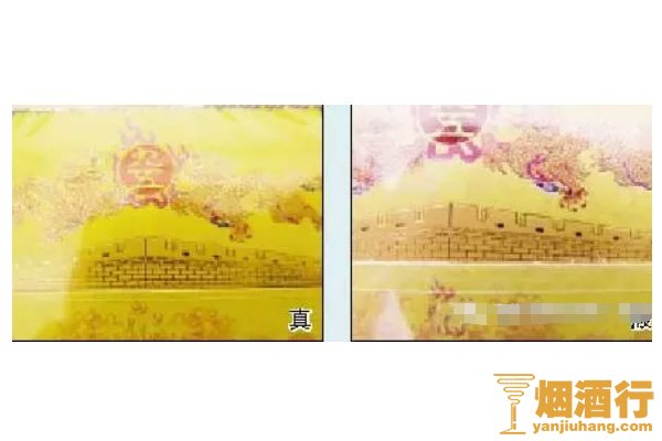 4、看烟盒上的城墙图案。真烟上的城墙图案清晰,印刷精细,城墙的线条明显;假烟的城墙图案模糊,印刷工艺粗糙。会出现城墙墙砖少印,错印的现象。