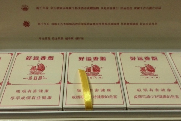 黄鹤楼(好运)采用浅米色的硬盒包装,并且在烟盒上印有红色的花纹和图案,此外香烟的烟嘴处含有特质的爆珠,捏碎后口感淡雅飘逸。